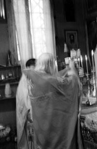 Liturģija. Tēvs pārģērbās un parādījās mirdzošā tērpā. Iedegās sveces, un