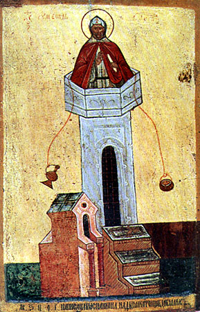 Viņu nevajag jaukt ar svēto Simeonu Stabinieku (+459, 1/15. sept.), kurš arī darbojās Antiohijas Sīrijas apgabalā. Svētais Simeons Stabinieks piedzima 521. gadā Sīrijas Antiohijā, dievbijīgiem vecākiem Jānim un Martai. Svētā Marta (piemiņas diena 4. jūl.) jau jaunībā nolēma sevi veltīt bezlaulības dzīvei un centās kļūt par mūķeni, bet vecāki uzstāja, lai viņa stājas laulībā ar jaunekli Jāni. Pēc sirsnīgām lūgšanām svētā Jāņa Priekšteča vārdā nosauktajā baznīcā, svētajai parādībā tika norādīts paklausīt vecāku gribai un stāties laulībā. Laulības dzīvē svētā Marta visā centās izdabāt Dievam un vīram. Viņa bieži lūdzās, lai viņai tiktu dāvināts bērniņš un apsolīja viņu atdot kalpošanai Dievam. Svētais Jānis Priekštecis, parādoties svētajai Martai, atklāja, ka viņai piedzims dēls, kurš kalpos Dievam. Piedzimušais mazulis tika nosaukts par Simeonu un nokristīts divu gadu vecumā. Jau jaunībā viņš ievēroja stingrus gavēņus. Jau šajā laikā svētajam Simeonam vairākas reizes parādījās Kungs pravietojot priekšā stāvošos varoņdarbus un apbalvojumus par tiem. Kad Simeons bija 6 gadus vecs, Antiohijas pilsētā notika zemestrīce, kuras laikā gāja bojā viņa tēvs. Zemestrīces laikā Simeons bija baznīcā. Izejot no tās, viņš apmaldījās un septiņas pavadīja pie dievbijīgas sievietes. Atkal parādījies Martai, Jānis Priekštecis norādīja, kur atradās pazudušais zēns. Svētā māte, atrodot savu dēlu, pēc tam apmetās Antiohijas priekšpilsētā. Sešu gadu vecumā, Simeons aizgāja tuksnesī, kur kādu laiku atradās pilnīgā vientulībā. Tajā laikā viņu apsargāja un ēdināja gaismasnesējs eņģelis un beidzot aizveda uz vientuļu klosteri, kuru pārvaldīja igumens tēvs Jānis, kas svētcīnījās uz staba, viņš pieņēma bērnu ar mīlestību. Pēc kāda laiks svētais Simeons vērsās pie stareca Jāņa ar lūgumu, lai arī viņam atļauj svētcīnieties uz staba. Ar igumena svētību, klostera brāļi uzcēla jaunu stabu, netālu no igumena staba. Veicis septiņgadīgā zēna ietērpšanu mūka kārtā, tēvs Jānis pats uzveda viņu šajā stabā. Jaunais svētcīnītājs, Dieva stiprināts, ātri pieauga garīgi, pat apsteidzot varoņdarbos savu pieredzējušo skolotāju. Par stingrajiem varoņdarbiem svētais Simeons saņēma no Dieva dziedināšanas dāvanu. Slava par jaunā mūka varoņdarbiem sāka izplatīties ārpus klostera un pie viņa sāka nākt mūki un pasaulnieki no dažādām vietām, lai dzirdētu viņa padomus un saņemtu dziedināšanu no slimībām. Pazemīgais svētcīnītājs joprojām atradās sava garīgā vadītāja tēva Jāņa vadībā. Savā 11-ajā dzīves gadā puisēns izlēma darboties uz augstāka staba, uz kura galu veda 40 pakāpieni. Uz cīniņa vietu atnāca Antiohijas un Selevkijas bīskapi, kuri iesvētīja svētcīnītāju diakona kārtā un pēc tam atļāva viņam uzkāpt jaunajā stabā, uz kura svētais Simeons cīnījās 8 gadus. Svētais Simeons karsti lūdzās, lai viņam nosūta Svēto Garu un svētcīnītāja svētā lūgšana tika uzklausīta. Svētais Gars nonāca uz viņu degošas sveces veidā, piepildot svētcīnītāju ar Dievišķo Gudrību. Pie uzliktajiem mutiskajiem „darbiem”, svētais Simeons pastiprināja rakstiskās pamācības par grēku nožēlu, mūku dzīvi, par Kristus iemiesošanos un par nākamo Tiesu. Pēc stareca Jāņa nāves svētais Simeons, iekārtoja savu dzīvi tā: no saules lēkta līdz 9 pēcpusdienā viņš lūdzās, pēc tam līdz saules rietam viņš lasīja grāmatas un pārrakstīja Svētos Rakstus, pēc kā atkal nostājās lūgties, un lūdzās visu nakti, kad sākās jauna diena, viņš nedaudz atpūtās, un ar saules lēktu sāka parasto lūgšanu kārtību. Svētais Simeons pabeidza varoņdarbu uz otrā staba un pēc Dieva norādes, pārcēlās uz Brīnumkalnu, atstājot savā klosterī pieredzējušu starecu mūku vadīšanai. Uzkāpšana Brīnumkalnā pamatojās uz Kunga redzēšanu, Kurš stāvēja uz kalna virsotnes. Svētais Simeons turpināja varoņdarbus tajā vietā, kur redzēja Kungu, sākumā uz akmens, bet pēc tam uz jaunuzcelta staba. Svētajam Simeonam tika atklāti nākotnes notikumi, viņš pravietoja par Antiohijas arhibīskapa Efrema nāvi un bīskapa Domina slimību, kas viņu piemeklēja kā sods par nežēlsirdību. Svētais Simeons pravietoja Antiohijas pilsētai zemestrīci un pārliecināja visus iedzīvotājus nožēlot grēkus. Viņš izdziedināja dažādas slimības un pat augšāmcēla mirušos, piesaucot viņa vārdu atsvabinājās persiešu sagūstītie antiohieši. Uz Brīnumkalna svētais Simeons uzcēla klosteri, baznīcu, kuru cēla tie cilvēki, kurus viņš bija izārstējis no slimībām, kā pateicību par viņa izrādīto žēlastību. Klostera vajadzībām svētais ar lūgšanu izlūdzās ūdens avotu, un kādu reizi, kad nepietika graudu, pēc viņa lūgšanas Kungam, klostera klētīs pavairojās graudi. 560. gadā pēc Kunga pavēles svētais svētcīnītājs 39 gadu vecumā pieņēma no Selevkijas bīskapa Dīonīsija priestera kārtu. 75 gadu vecumā Kungs viņam pavēstīja par viņa drīzo nāvi. Viņš pasauca klostera brāļus un atvadu sarunā mācīja svētības un ar mieru aizgāja pie Dieva 596. gadā, viņš svētcīnījās uz staba 68 gadus. Gan dzīvs būdams, gan arī pēc nāves, svētais darīja brīnumus, dziedināja aklos, klibos un spitālīgos, daudzus glāba no zvēriem, izdzina ļaunos garus un augšāmcēla mirušos.
